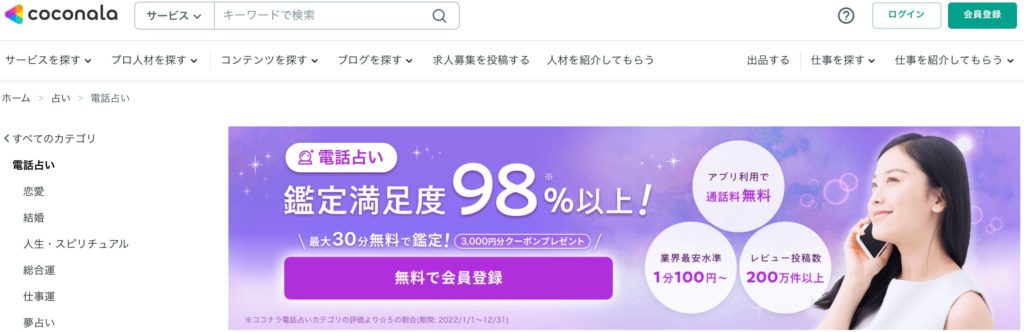 ココナラ電話占い