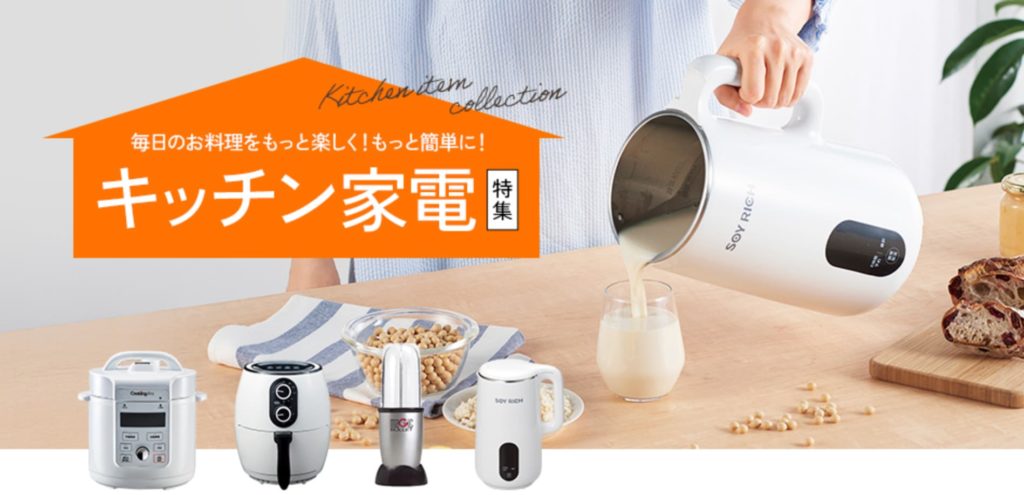 テレビの通販番組でも大人気のキッチン家電や生活家電、工具、美容家電、フィットネス機器、エクササイズ器具などを販売しています。