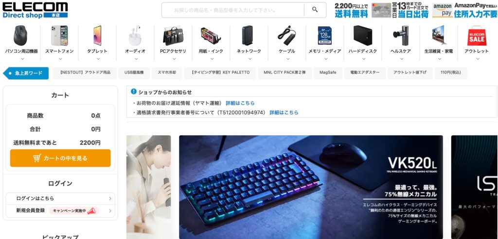 店舗で運営している家電量販店と違ってスペースに限りがないため商品数は実店舗に比べて圧倒的に多いです。