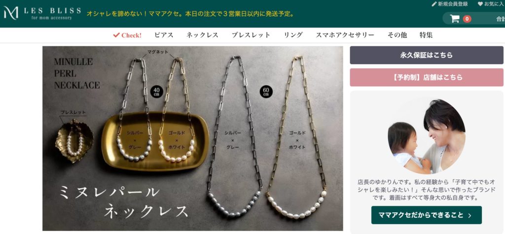子育て中のママでも着けやすい素材やデザインにこだわったアクセサリーを展開しています。
