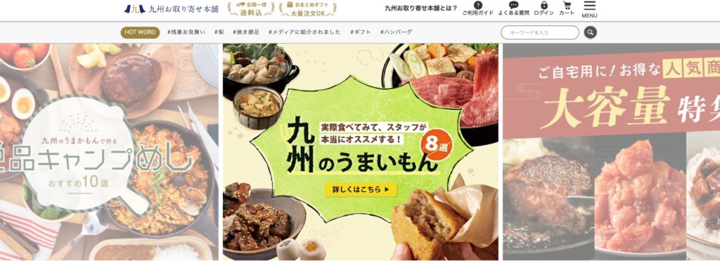 お肉や海鮮、かに、お米、高級グルメ、鍋などが人気。