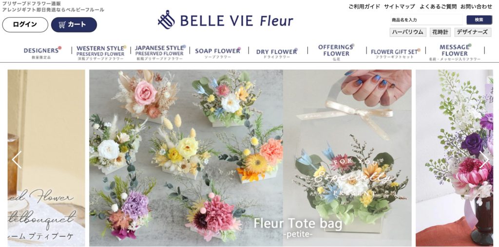 造花を使ったハンドメイドのアートフラワーを販売する通販サイト。
