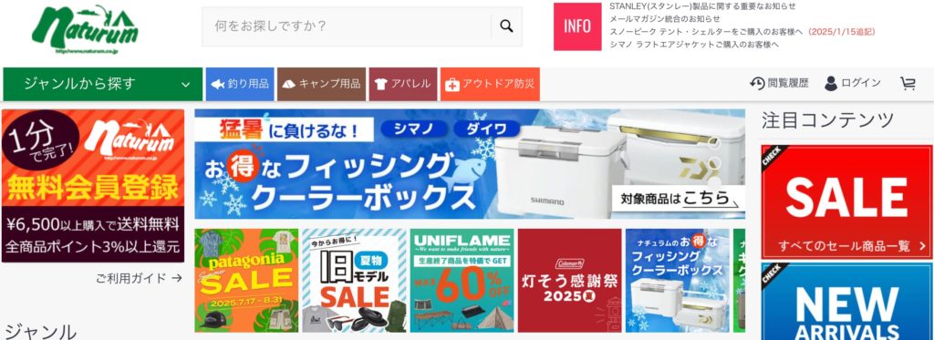 アウトドア用品、キャンプ用品、釣り用品を販売している通販サイトです。
